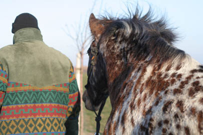 19.09.2010 Ich bin um Einiges von dem Gedanken abgerückt, daß aus Lucas mal irgendwie ein spektakuläres Barockpferchen wird, oder Zirkuspferd, oder Westernpferd. Was er wirklich konsequent ist: Lucas der Knabstrupper. Er ist oft launisch, manchmal verspannt, aber er ist immer neugierig und freundlich. Aber, ob er etwas dazulernen will, das bestimmt er weitestgehend selbst. Und das soll er auch. Er ist ein Pferd. Man kann ihn zu nichts zwingen. Wir arbeiten immer am Repekt. Ansonsten sind wir viel im Gelände unterwegs, das ist immer schön und da Lucas sich nicht mehr oft erschreckt, auch sehr erholsam. Ansonsten machen wir Bodenarbeit, Longe und immermal auf einem Platz reiten für die Gymnastik. Aber wir sind glücklich, ich auf alle Fälle.
