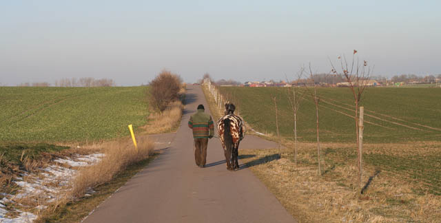 17.01.2009 Wir hatten jetzt einige Tage richtig viel dicken Schnee im Gelände liegen und das Ausreiten hat allen ( Lucas wie seinem Reiter ) viel Spaß gemacht, obwohl es sehr kalt war. Hier will ich mal wieder ein Fazit schreiben zu diesem Pferdchen. Lucas ist ein feines, freundliches und verläßliches Reitpferd, der immer sofort von der Koppel kommt, um mit seinen Besitzern zu arbeiten, bzw. eigentlich eher zu spielen. Er hat immer Spaß an allen Übungen und am Laufen. Er ist im Gelände immer ausgeglichen, nie hektisch, buckelt nie, rennt einem nie unter dem Reiterhintern weg. Und er ist immer fleißig. Es macht also immer Spaß mit ihm. Eine Sache scheint allerdings immer ein “Problem” zu bleiben. Lucas kann noch so entspannt sein, es wird immer wieder vorkommen, daß er mitten im entspannten Schritt, wie auch im Galopp oder Trab plötzlich beschließt an irgendetwas nicht vorbeizugehen und dann wendet er blitzartig und sehr korekt auf der Hinterhand um 180 °und man findet als Reiter plötzlich eine andere Blickrichtung vor. Wir haben uns daran gewöhnt, es kommt fast bei jedem Ausritt ein oder mehrmals vor, aber für Anfänger wäre er daher nie ein gutes Pferd. Wir haben auch alles versucht, um ihm das abzugewöhnen, es scheint nichts zu geben. Man kann ihn auch nicht sensibilisieren, weil die auslösenden Objekte immer andere sind oder ihn manchmal über Wochen nicht stören, Bekannte Gegnstände, fremde Dinge, Menschen, Tüten, Scheemänner. etc. egal. manchmal liegt es schon daran, von welcher Seite das Licht darauf fällt. Naja wir tragen es inzwischen mit Fassung. Ich werde allerdings von Mitreitern die Lucas noch nicht kennen oft gefragt, was ich denn da mache . ....Ich ???? _____________________________________________________________________________ |